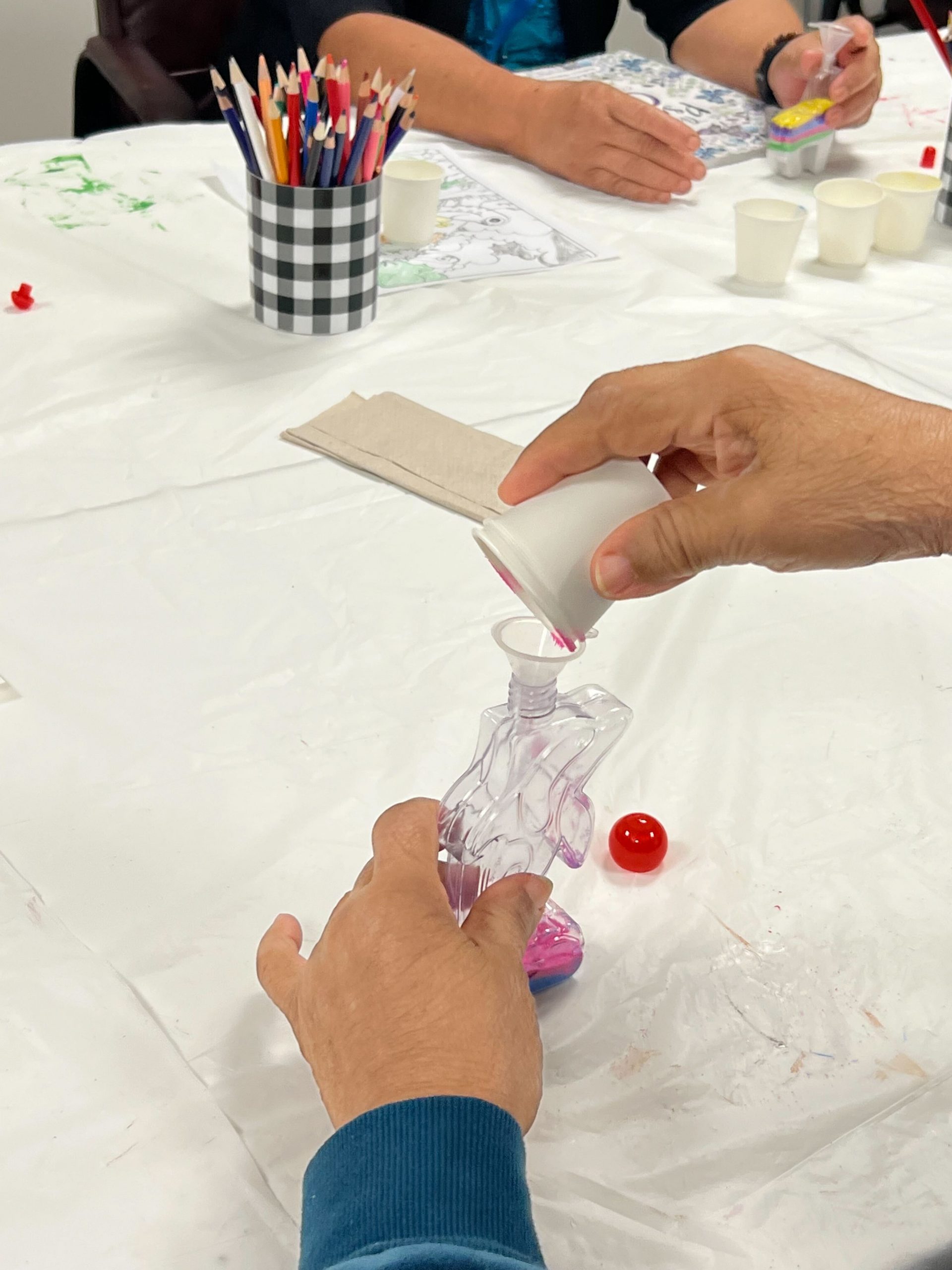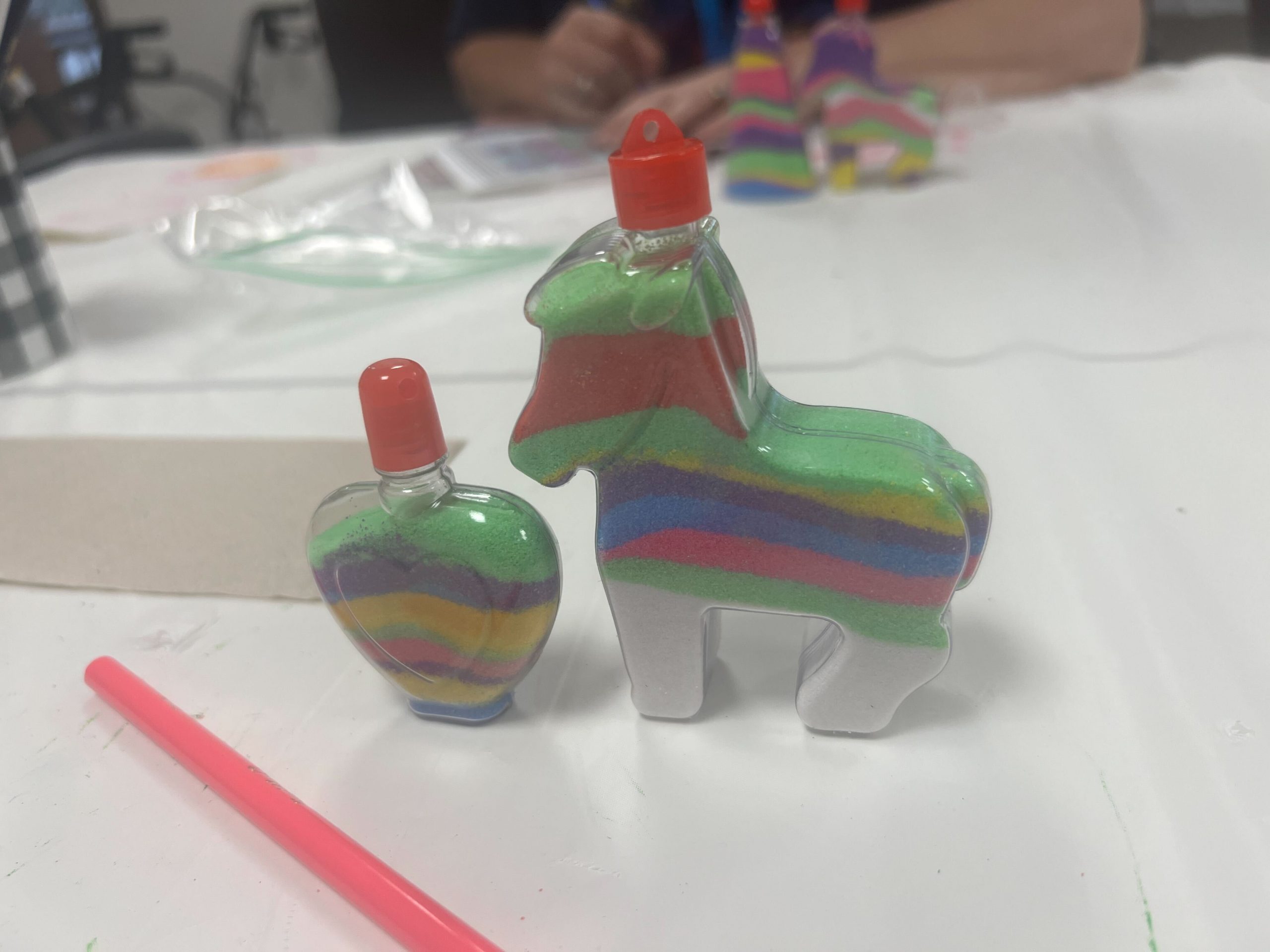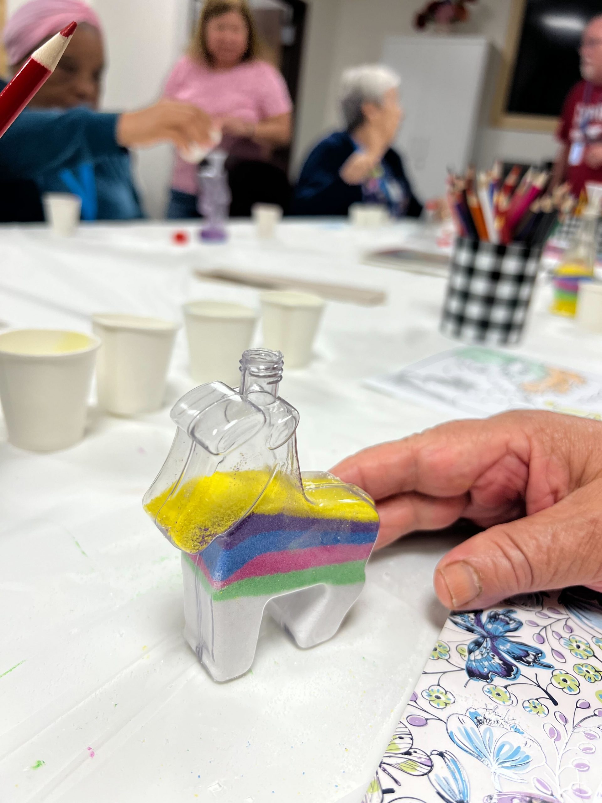 Sand crafts offer a multitude of benefits beyond the joy of creating something beautiful. Engaging in this activity can be soothing and therapeutic, providing a sense of relaxation and mindfulness. As our participants focus on arranging the sand and creating unique patterns, they experience excitement and fulfillment from creating something that is their own. This activity also encourages fine motor skills and hand-eye coordination, making it an ideal choice for individuals looking to enhance their dexterity. Moreover, the process of working with sand allows for self-expression and creativity, boosting confidence and self-esteem.